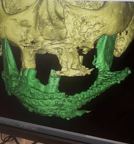 Alraad stayed in a coma for fifteen days and two surgeries followed, but the doctors lacked experience in performing jaw surgeries. After two months in the hospital they sent him back to Syria, where a doctor concluded the surgeons failed. He gave him medicines and said: “Do not let someone in Syria touch your mouth, because your treatment is not here. Your treatment is in Europe.”